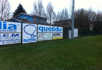Bifacciale, teli mesh traforati antivento, completi di bordatura di rinforzo e occhielli, ideali per l' esposizione negli stadi, palazzetti ed impianti sportivi in genere